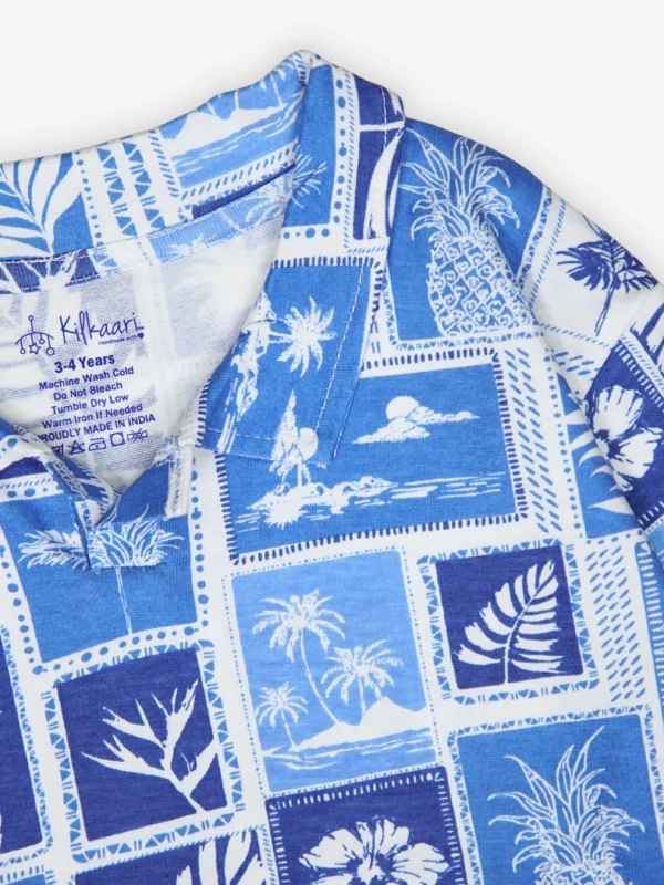 🌞 Features a smart collared top with tropical prints all over