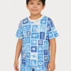 ✅ Vibrant travel-themed stamp print all over