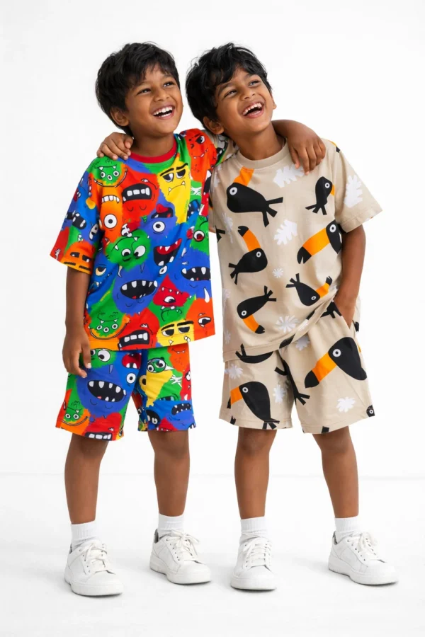 ✔ Fun All-Over Prints – bold monster & tropical bird designs kids love