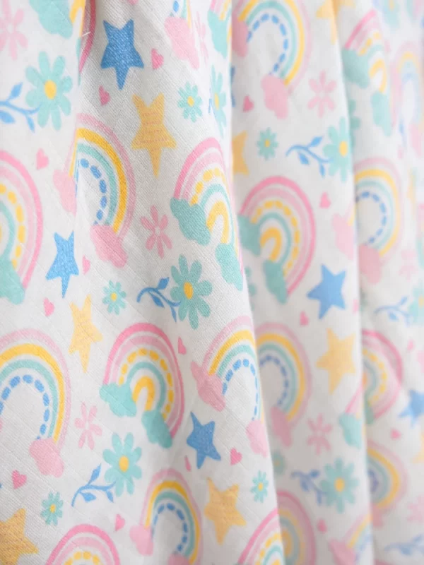 Adorned with a charming rainbow print, bringing a touch of joy and color to your baby’s essentials.