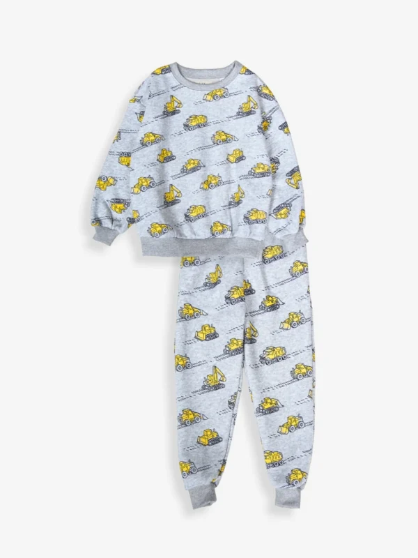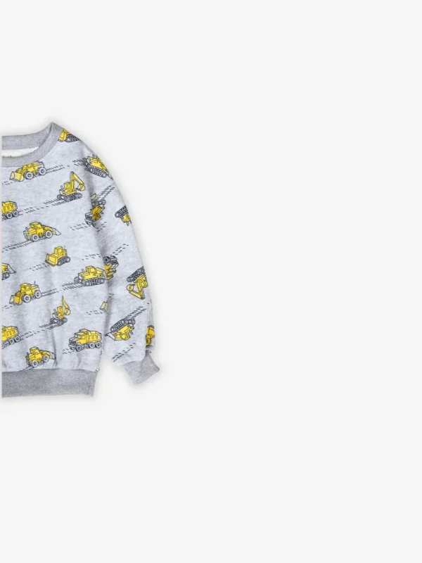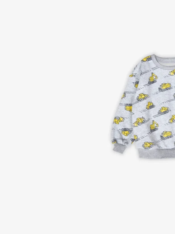 ✔️ All-over construction print featuring diggers, dump trucks & tractors